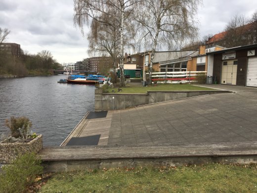 Hamburg, 08.04.2021, Hamburg-Nord, Kaemmererufer, Hanseat Verein fuer Wassersport (VfW), Vereinsgebaeude, Rampe