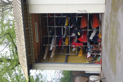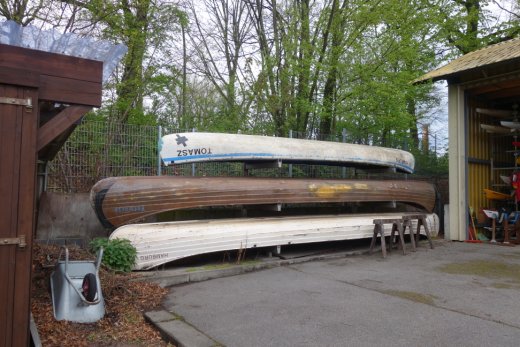 Hamburg, 03.05.2021, Hamburg-Nord, Wellingsbuetteler Landstrasse, Oberalster Verein fuer Wassersport (VfW), Nutzgebaeude, Lager