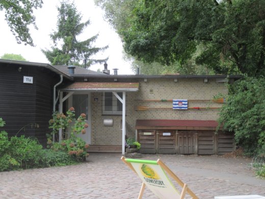Hamburg, 05.09.2018, Hamburg-Nord, Isekai, Rudern, Hamburger Ruderinnen-Club, Wassersportstaette, Vereinsgebaeude, Eingang