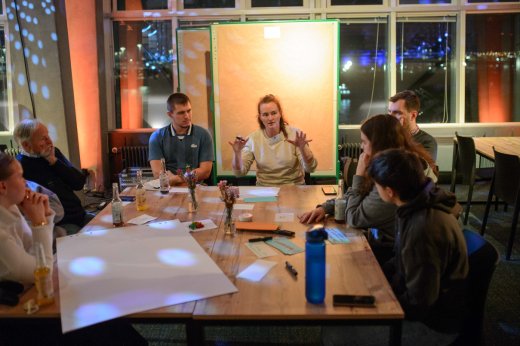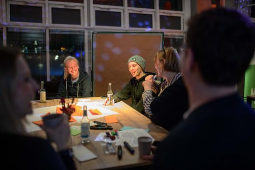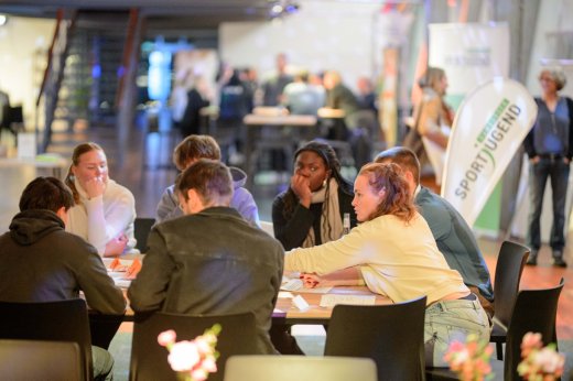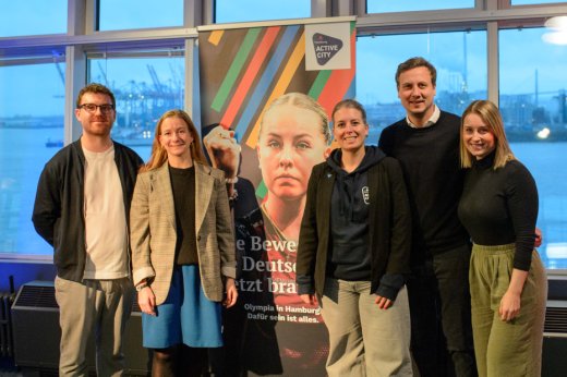 v.l. Moderator Matthias Wolf, Juliane Boetel (Vorsitzende Hamburger Sportjugend HSJ, Simone Blunck (Leitung Teilprojekt Konzeption, Vorprojekt Hamburg), Dr. Jonas Leder (Landessportamt), Pia Wilke (Geschaeftsfuehrung Hamburger Sportjugend HSJ)