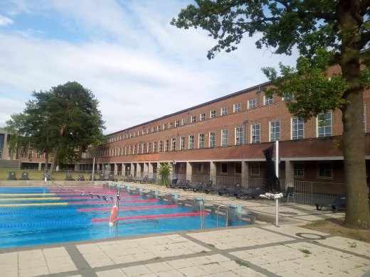 Berlin, 24.06.2025, Olympiapark, Friedrich-Friesen-Allee, Schwimmen, Sportschule, Schwimmbad